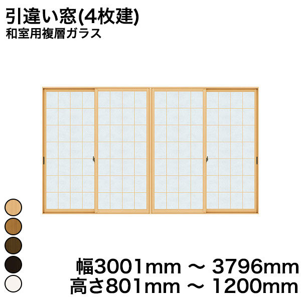 【YKKAP正規ガラス使用】YKK YKKAP マドリモ 内窓 プラマードU 引違い窓(4枚建) 和室用複層ガラス 荒間格子 すり板ガラス 4mm+A11+3mm 幅 3001mm ~ 3796mm 高さ 801mm ~ 1200mm『 内窓 二重窓 diy 防音 樹脂窓 樹脂サッシ 』