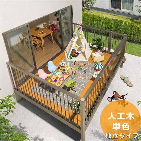 三協アルミ オルネ 庭置き式 フロントオープン たて格子 関東間 1.5間×5尺 人工木(単色) 『後付バルコニー ウッドデッキ リフォーム向け アルミ製』 人工木(単色)