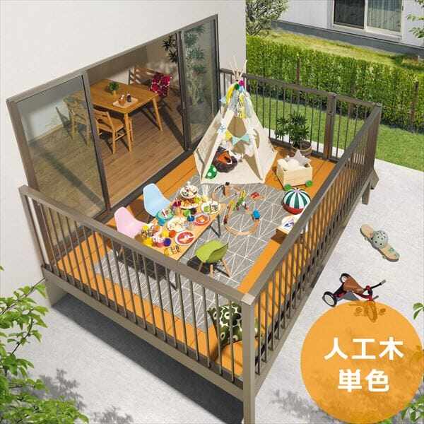 三協アルミ オルネ 庭置き式 フロントオープン たて格子 関東間 2.0間×3尺 塩ビデッキ 『後付バルコニー ウッドデッキ リフォーム向け アルミ製』 塩ビデッキ