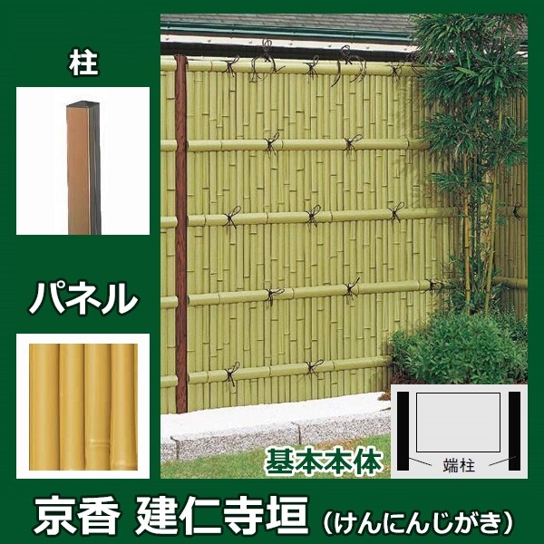 リクシル 竹垣フェンス 京香 建仁寺垣 ユニット型 間仕切りタイプ 片面仕様セット 基本本体 柱:ブロンズ 角柱 W-20 T-30 真竹