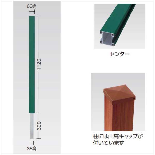 タカショー e-プライバシー オプション H940用柱 センター 山高キャップ付 『木調フェンス 柵』