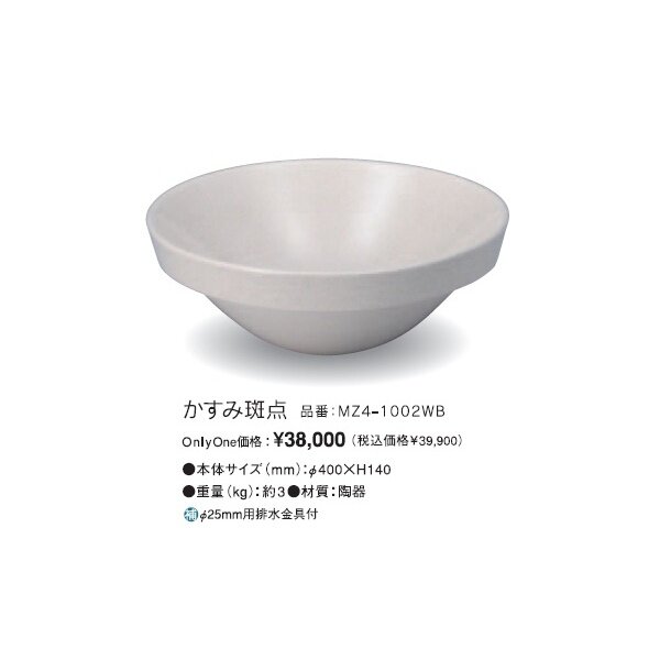 オンリーワン 信楽焼手洗い鉢Φ400 MZ4-1002WB かすみ斑点