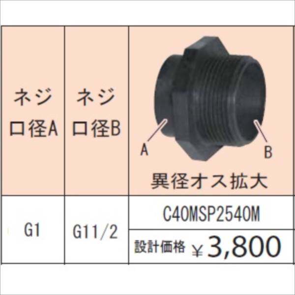 グローベン ポンプオプション イージーフィット異径継手 ネジ口径 G1:G11/2 異径オス拡大 C40MSP2540M 『ガーデニングDIY部材』