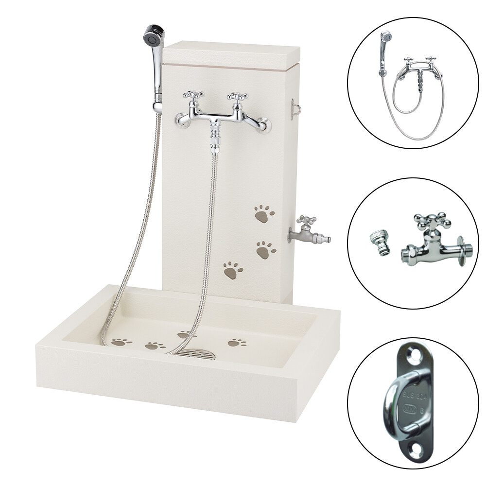 ニッコーエクステリア ニッコー わんGOOシリーズ シャワープレイス シカクル(本体) + シャワーヘッド付水栓金具(混合水栓用) + 補助蛇口 + ホースアダプター + リードフックセット カランパイプあり PF-SP-TR/PF-S9-M-N-2/F212/F410/LFP-DG