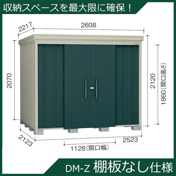 ダイケン ガーデンハウス 棚無し仕様 DM-Z 2525E-G-MG 豪雪型 『中型・大型物置 屋外 DIY向け』 マカダムグリーン