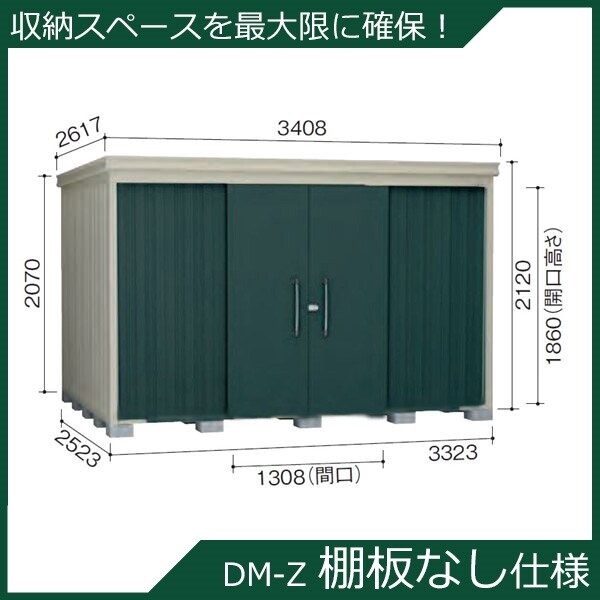 ダイケン ガーデンハウス 棚無し仕様 DM-Z 3325E-G-MG 豪雪型 『中型・大型物置 屋外 DIY向け』 マカダムグリーン