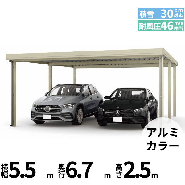 【商品のみ】カーポート 2台用 YKK YKKAP ジーポート Pro 900タイプ 横材なし 明かり取りなし 奥行延長柱6本 J55・12-55 H25 アルミ色