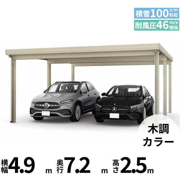 【商品のみ】カーポート 2台用 YKK YKKAP ジーポート Pro 3000タイプ 横材なし 明かり取りなし 奥行延長柱6本 J60・12-48 H25(凍上柱) 木調色