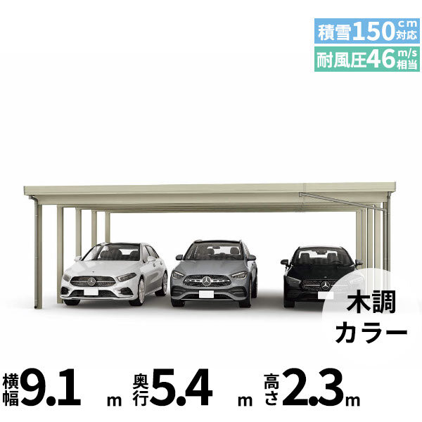 【商品のみ】カーポート 3台用 YKK YKKAP ジーポート Pro 4500タイプ 横材なし 明かり取りなし 奥行延長柱10本 J55・12-80 H24 木調色