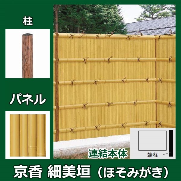 リクシル 竹垣フェンス 京香 細美垣 ユニット型 間仕切りタイプ 片面仕様セット 基本本体 柱:ブロンズ 丸柱 W-20 T-26 真竹