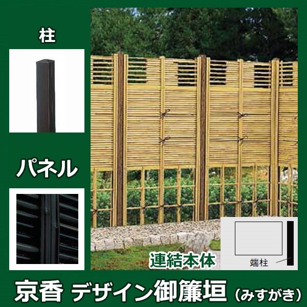 リクシル 竹垣フェンス 京香 デザイン御簾垣 2型 ユニット型 間仕切りタイプ 両面仕様セット 連結本体 柱:マイルドブラック 角柱 W-10 T-18 黒竹