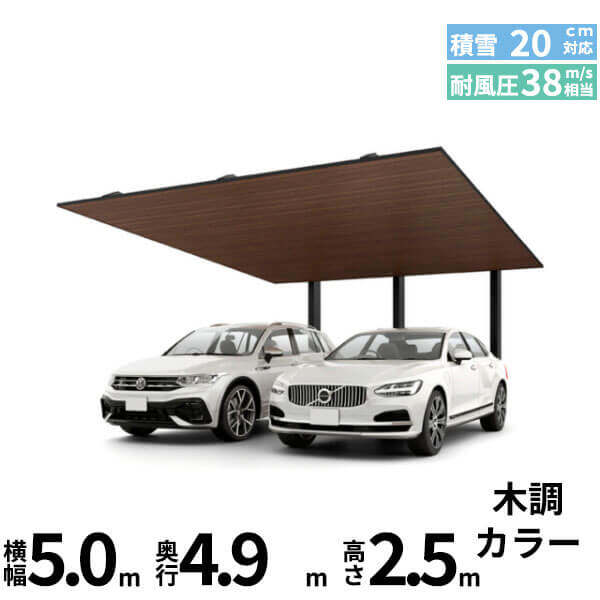 【商品のみ】カーポートSC 後方支持 2台用 基本棟 標準柱(H25) 50-48型 LIXIL リクシル 木調色