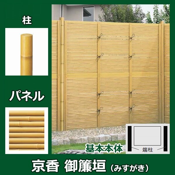 リクシル 竹垣フェンス 京香 御簾垣 ユニット型 間仕切りタイプ 両面仕様セット 基本本体 柱:真竹調 丸柱 W-20 T-21 真竹