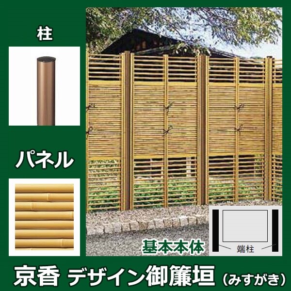 リクシル 竹垣フェンス 京香 デザイン御簾垣 3型 ユニット型 間仕切りタイプ 両面仕様セット 基本本体 柱:ブロンズ 丸柱 W-10 T-18 真竹