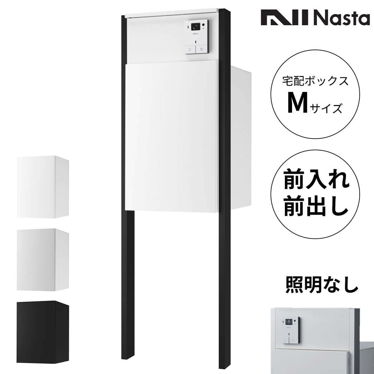 Nasta Box + POST 門柱タイプ 宅配ボックス:Mサイズ 前入前出 標準色 / インターホンボックス:LED照明無 / 支柱:LED照明無 マットブラック インターホン別売