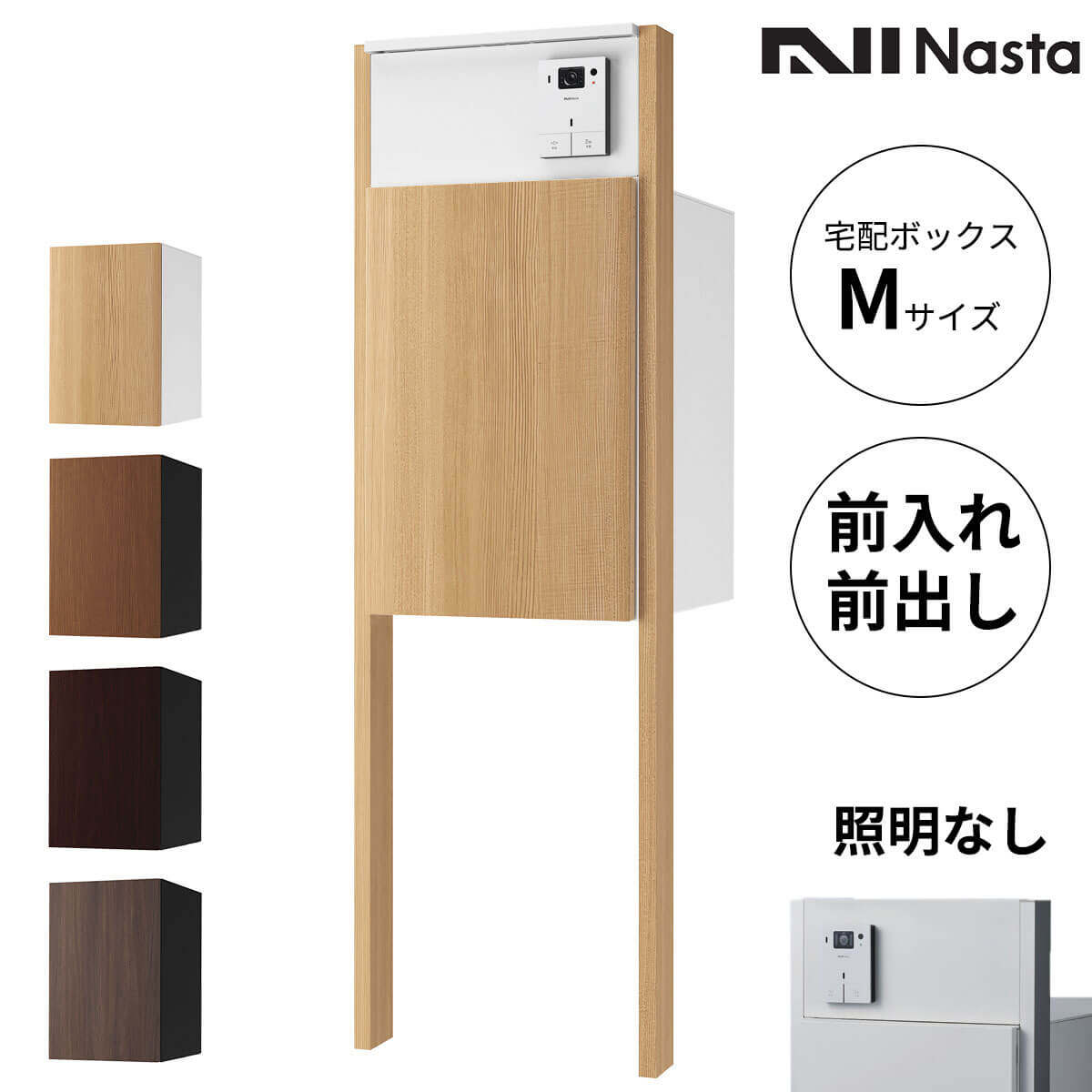 Nasta Box + POST 門柱タイプ 宅配ボックス:Mサイズ 前入前出 木目色 / インターホンボックス:LED照明無 / 支柱:LED照明無 木目色 インターホン別売