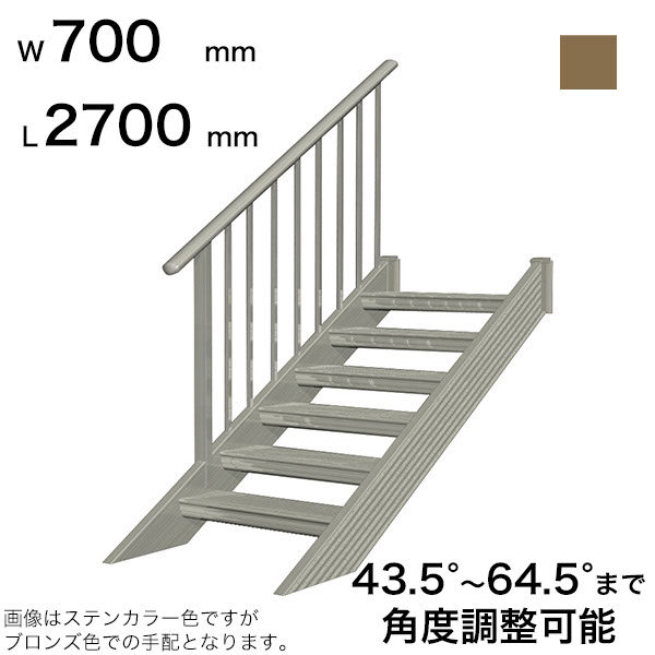 森田アルミ工業 STAIRS ステアーズ 片手摺付(立格子)階段長さ L2700mm 階段幅 W700mm 手摺笠木長さT 2500mm パネル長さP 1950mm ステップ枚数 8枚 角度調節範囲 43.5°~64.5° 踏板の耐荷重 150kg SB2707T1 ブロンズ