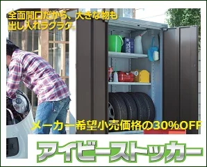 物置・収納庫を購入の際にどの物置がいいのか?自分にピッタリな物置を探しいたいけど、どれがいいか分からない! そんな方に、物置を選ぶ際のポイントやメーカーによっての違いなどを紹介いたします。 最後に当店で取り扱っている物置・収納庫を御紹介いたします。 物置を置くメリットと選び方は? 物置を置くとメリットがあります! 一番のメリットとしては収納のスペースが広がること。 年に数回しか使わない物、屋外で使用する物(キャンプやガーデニング用品など)、大きい荷物などなど。 家の中で使う物は家の中で保管し、屋外や家に置いておくと邪魔なものは物置へ収納できることでスッキリすることが出来ます。 しかし物置のサイズや種類が様々あり何を選んだらいいか分からないかと思います。 様々なサイズ、デザイン、価格、メーカーの違いがあり自分にピッタリな商品はどれか悩んでしまいます。 そこで物置を上手に選ぶポイントをご紹介致します。 物置のサイズで選ぶ 様々な大きさの物置があります。 例えば物だけ入る小さな物置や、人が中に入って作業が出来る大きな物置、物置と自転車がおける物などがあります。 その為、使用用途を考えてからサイズを選ぶと上手く物置を選ぶことが出来ます。 ここからはサイズ別の物置の種類をご紹介します。 小型物置 「ガーデニングをやっていて道具を収納したい!」「子供の遊び道具や小物を収納したい」そんなあなたには小型の物置をお勧めです。 小型物置なので少しのスペースに設置ができますし、組み立ても簡単にすることが出来ます。 メーカーにもよりますが、奥行が1000mm前後までの物を主に小型物置と呼ばれます ハーフ棚タイプ物置 こちらは高さがある物を収納できる物置になります。 掃除用具や縦長な物を多く収納する方にお勧めです。 サイズも小型物置を縦長にした様なものなので設置場所を選ばず施工ができます。 中型・大型物置 「自転車や趣味の道具など大きい物を収納したい!」など、中型・大型物置サイズであればある程度の物は収納ができます。 中型・大型の物置は、奥行・幅・高さが十分にあるので物置の中で作業が出来ることが最大の利点です。 ただサイズが大きので場所が取られてしまい、商品代金と施工費なども小型物置より高くなってしまいます。 アジャスター調整機能も付いておりませんので、プロの施工をオススメします。 オープンスペース付き物置 物置とオープンスペースが合体した物置です。オープンスペースには自転車やバイクを収納される方が多いです。 しっかりと収納したいものは物置に、段差があると使いにくいものを収納するときにはオープンスペースを使いましょう。 中・大型物置よりもさらに組立にコツが入ります。こちらもプロの施工をオススメします。 メーカーで選ぶ 皆さんは、物置のメーカーはご存じでしょうか? 国内内にはさまざまな物置を販売しているメーカーがあります。 その中でもシェア率が高い3社(イナバ物置/タクボ物置/ヨド物置)を比較しながらご紹介します! イナバ物置 イナバ物置と言ったら「100人乗っても大丈夫!」のCMが印象的ですよね。 CMにより知名度もありイナバ物置は、業界シェアが1位になります。 イナバ物置の特徴としては、他社よりも壁が厚く作られていることで耐久性に優れた物置となっております。 また、塗装に粉体塗装を使用しているので、サビなどの劣化を防ぐ加工がされています。 ヨド物置 ヨド物置は、イナバ物置に次いで第2位のシェア率を誇るメーカーになります。 特徴としては、ガルバリウム鋼鈑を採用していてサビや耐久性に優れている物置になります。 また扉の開口部が業界で、1番広く設計しているので物の出し入れの際にとても便利な機能が特徴です。 タクボ物置 タクボ物置は、イナバ物置・ヨド物置よりは知名度は低いですがシェア率3位になります。 特徴としましては、2社よりも値段がリーズナブルになっており、組み立ても他社と比べると簡単なところが特長です。 またカラーバリエーションやデザインが他社よりも豊富で、おしゃれな物置が欲しい方にはお勧めです! 扉の開き方の種類で選ぶ 物置には扉の開き方に種類があります。 扉の開き方により物置の特徴やデメリットなどがありますので、種類ごとに紹介をしていきます。 観音開き・片開きタイプ 物置の開口がすべて開くので、収納物の確認や収納物の出し入れがスムーズにできることがメリットです。 ただ扉を開くため間口側のスペースを確保しないと扉が開きませんので、奥行が狭い場所にはあまり適していません。 特に小型の物置に多く見られる開閉タイプになります。 2枚引き戸タイプ 左右どちらからも開閉ができることがメリットです。観音開きと違い引き戸になるので間口側のスペースを確保せずに設置が可能です。 ただし間口が約半分のスペースしか確保できないので、横に長い物などは出し入れが難しくなります。 小型~中型までの物置に