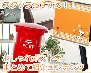 ポストを選ぶ際に、特に気をつける必要があるポイントは3つあります。 一つ目は機能、二つ目はデザイン、三つ目は価格です。 もちろん取付できなければ意味がないですし、使い勝手が悪くなれば日常生活が大変になります。 でもあえてここでは、デザイン性に焦点をあててご紹介致します。 20以上のメーカー、2000点以上のポストから、特におすすめのおしゃれデザインポストをご紹介! ※実際の商品ページを確認したい場合、商品画像をクリックして下さい。 設置が簡単な据え置きポストシリーズ セトクラフト ポストシリーズはこちらでチェック 毎年新デザインで勝負!売り切れ必須!セトクラフト スタンドポストシリーズ セトクラフトは、デザインで勝負するおしゃれポストメーカーです。 中国で生産をしているのですが、約半年ごとに新商品(デザイン)を発表しており、気が付いたら次回の生産予定がなかったり・・・。 気に入ったら、早めのご注文をおススメします。 デザインは、工事不要の置き型タイプが多く、特にディズニーシリーズのポストデザインなど、モチーフ(コンセプト)に基づいたデザインには定評があります。 使い勝手よりもデザイン。ある意味で突き詰められたメーカー&郵便ポストです。 ジャービス商事 ポストシリーズはこちらでチェック なつかしのポストデザイン ジャービス商事 素焼きポストシリーズ 昔なつかしい郵便ポストをモチーフにしたデザインです。 ただし実用性は乏しくサイズも小さいため、お庭を飾る意味合いでの購入がメインとなります。 ジュリアナ社 パーセルはこちらでチェック 北欧デンマークで長年愛されている宅配ポスト パーセルシリーズ 高い品質とデザイン性を兼ね備え、北欧の人々に長く愛されて続けているデザインポストです。 ヨーロッパ製の商品は、こちらのポストに限らずおしゃれなアイテムが多い傾向にあります。 おしゃれでかわいい壁掛けポストシリーズ セトクラフト 壁付けポストシリーズはこちらでチェック キャラクターがかわいい!セトクラフト 壁付けポストシリーズ 再度出てきたセトクラフトです!スタンド式と同じくおしゃれなキャラクターデザインがポイントです。 特に壁付けはシルエットで魅せるシリーズが人気となっています。 本体の赤と黒のコントラストを楽しんでみてはいかがでしょうか。 クーリエ ポットシリーズはこちらでチェック ポストとプランターのまさかのコラボレーション クーリエ ポットシリーズ ポストの正面に小さなプランタースペースを設け、そこに造花を入れることで、今までにないおしゃれなポストを創る事ができます。 ポストをキャンパスに見立て、ワンポイントの文字もかわいいですね。 立体感のある、自由度の高いクーリエポットは、飾る人のセンスが問われます。 トーシン アンフェアシリーズはこちらでチェック 職人の心を感じるこだわりポスト トーシン アンフェアシリーズ トーシンコーポレーションのこだわり抜いたポストです。製作までに約1ヶ月ほどかかる場合もございます。 「金箔・白銀箔」タイプは、金閣寺にも使われている箔と同様の金沢箔を使っているという気合の入れようです。 また「塗」は海外の超高級車の塗装を担当している工場で行います。 ただのおしゃれを通り越した、ホンモノのこだわりポストシリーズ。それがアンフェアです。 丸三タカギ ポスティーレシリーズはこちらでチェック 名入れができる木目調ポスト 丸三タカギ ポスティーレシリーズ お家の顔である表札をつくるメーカーだからこその発想! ポストに豊富なカラーバリーエーション&お求め安い価格帯。 表札付きでコストパフォーマンスの高いオシャレなポストとして人気です。 オンリーワン ノイエキューブ シャビーウッドシリーズはこちらでチェック 流行りのシャビースタイル オンリーワン ノイエキューブ シャビーウッドシリーズ 正面のパネルにダメージ加工を施す事で、おしゃれ感を出す海外でも人気のデザインを、ポストにも入れ込みました! 優しいカラーも相まって、ガーデニング好きにはたまらない一品です。 オンリーワン ウェアシリーズはこちらでチェック 正面からのデザインにとことんこだわったポスト オンリーワン ウェアシリーズ 正面から見た時に、口の部分が見えないように設計されています。 ポストの機能だけでなく、外構のワンポイントとしても重宝します。 特に上部の曲り部分は非常に美しく、他のポストにない存在感を醸し出します。 オンリーワン 和の文シリーズはこちらでチェック 和風モダンのおしゃれをポストにも オンリーワン 和の文シリーズ 和を意識しつつ、モダンも感じるポストシリーズです。 和のデザインですが、洋風住宅にも合います。 近年の和風ブームに、和の文ポストや陶器表札なんていかがでしょうか。 省スペースで取付可能!おしゃれなポール建てシリーズ YKKAP フィッテシリーズはこちらでチェック 色の組合せは100パターン!自分好み