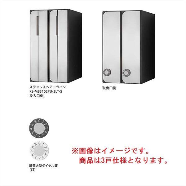 ナスタ 集合住宅用屋内ポスト 3戸用 静音大型ダイヤル錠 前入れ後出し KS-MB3102PU-3LT