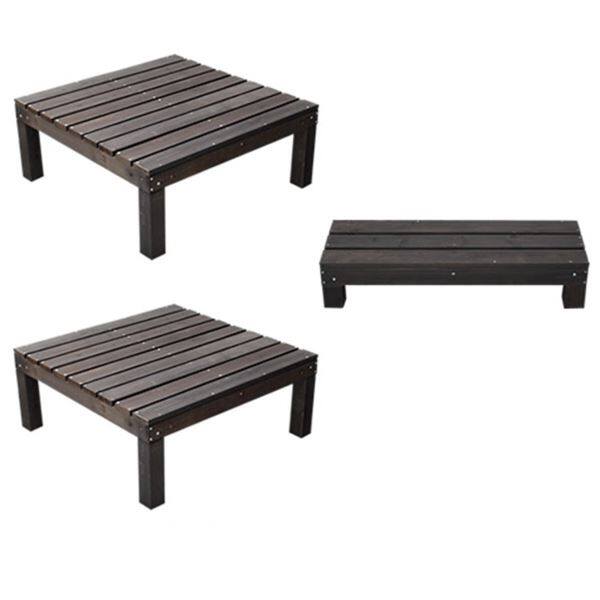 Sスタイル デッキ縁台180×90 3点セット #DE-18090-3PSET-DBR ダークブラウン 『濡れ縁』