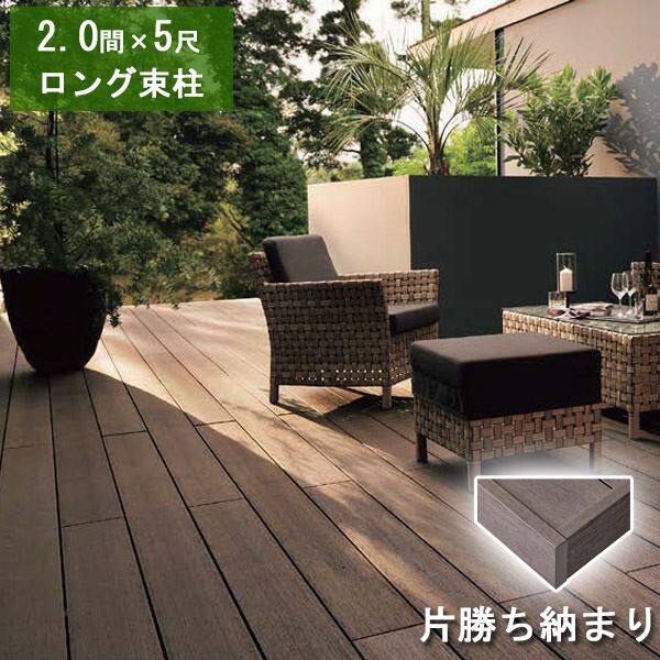 リクシル デッキDS 片勝ち納まり 2間×5尺 ロング束柱Aセット(固定束 高さ1000mm) 『ウッドデッキ 人工木』