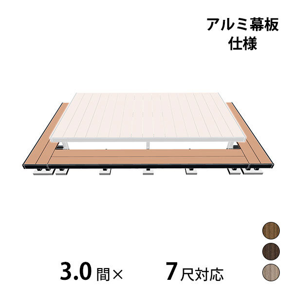 三協アルミ ヴィラウッド オプション 二段デッキ 間口+出幅(両側)対応 アルミ幕板仕様 束連結納まり 3.0間×7尺 プレミアムタイプ
