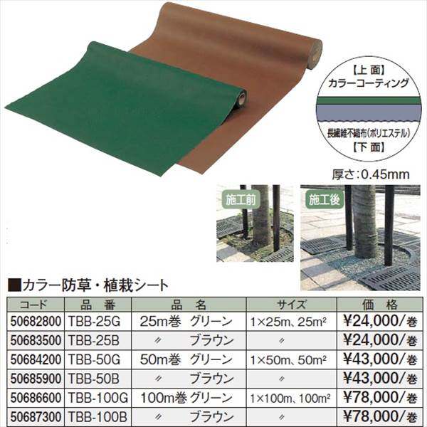 タカショー カラー防草・植栽シート 100m巻 TBB-100B コード:50687300 ブラウン