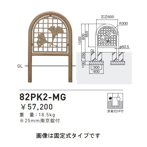 個人宅配送不可 帝金 82PK2-MG バリカー横型 面格子スチールタイプ W600×H800 直径60.5mm 脱着式カギ付