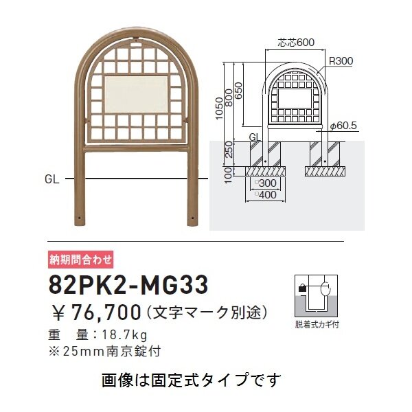 個人宅配送不可 帝金 82PK2-MG33 バリカー横型 面格子スチールタイプ W600×H800 直径60.5mm 片面表示 脱着式カギ付