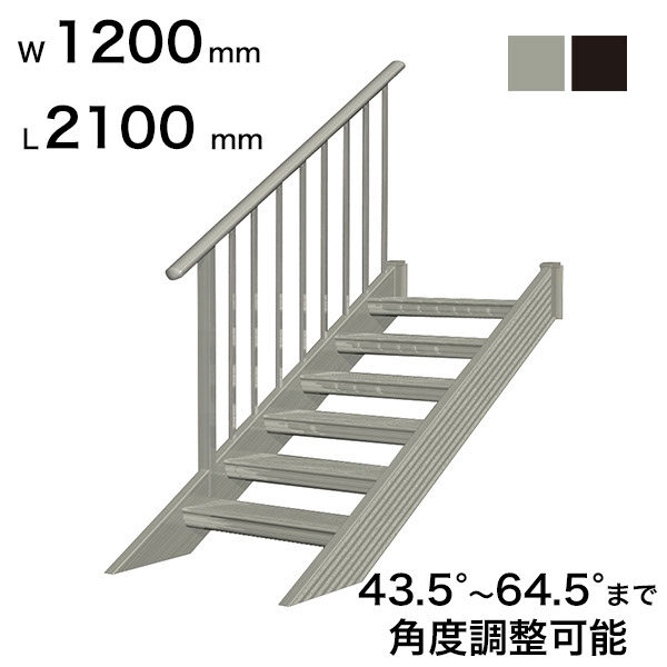 森田アルミ工業 STAIRS ステアーズ 片手摺付(立格子)階段長さ L1200mm 階段幅 W1200mm 手摺笠木長さT 1000mm パネル長さP 430mm ステップ枚数 3枚 角度調節範囲 43.5°~64.5° 踏板の耐荷重 150kg S□1212T1