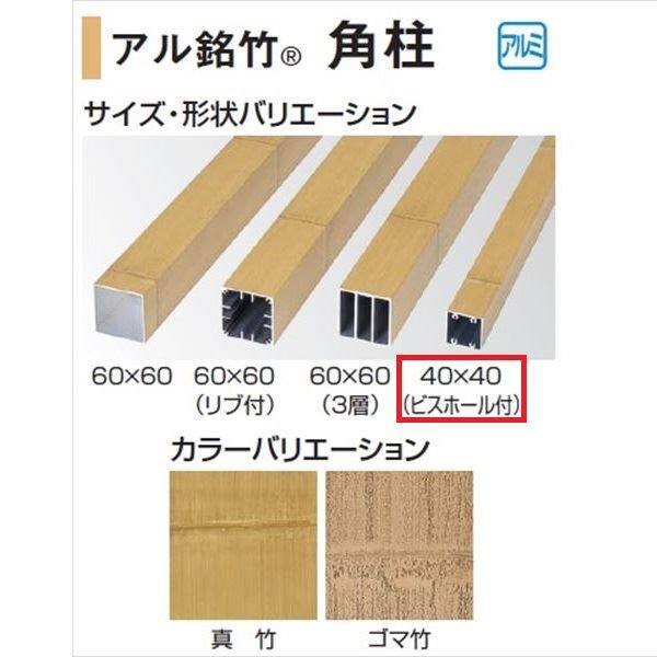 タカショー 人工竹垣材料 アル銘竹 角柱(リブホール付) 40×40(ビスホール付) L2400 『ガーデニングDIY部材』
