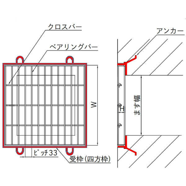 個人宅・現場配送不可 法人様限定商品 法山本店 正方形落し込みグレーチング HGF用受枠 黒色塗装 受枠寸法520×38mm HGF-500-32受枠